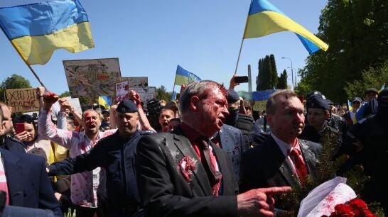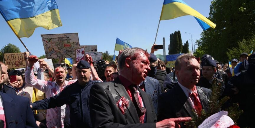 Atacan con pintura roja al embajador ruso en Polonia durante los actos del Día de la Victoria