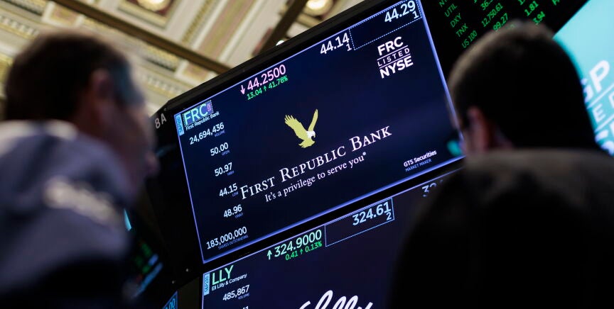 First Republic tuvo la tercera tasa más alta de depósitos no asegurados entre los bancos de EEUU, detrás de Silicon Valley Bank (SVB) y Signature Bank, según una nota de Raymond James. First Republic, que tiene sede en San Francisco, fue degradada a la categoría de "junk" (basura, en inglés) el miércoles tanto por Fitch Ratings como por S&P Global.