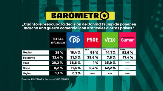 ¿Por qué es importante? Según los datos recogidos por el barómetro de laSexta, existe una gran preocupación, especialmente entre los votantes de PSOE y Sumar, de la guerra arancelaria iniciada por Donald Trump.