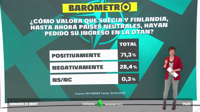 Barómetro laSexta | El 71% de los encuestados ve positivo el ingreso de Finlandia y Suecia en la OTAN