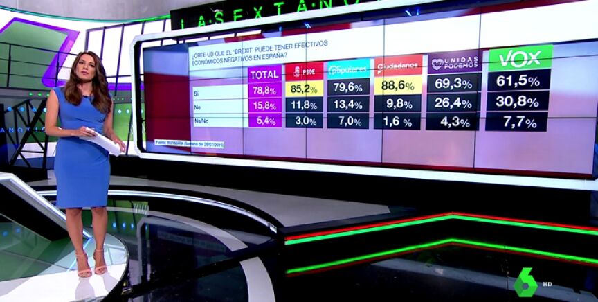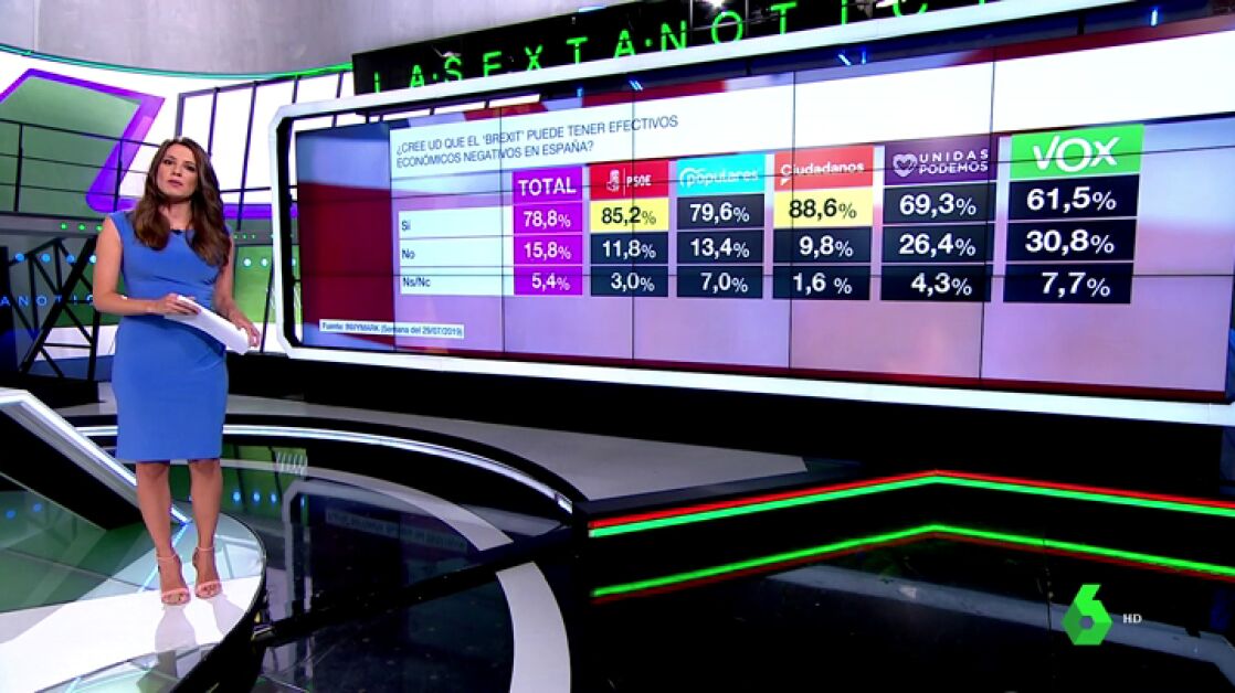 El último barómetro de la Sexta recoge las opiniones de los ciudadanos y votantes de los partidos sobre su nivel de inquietud ante la posible ejecución del Brexit el próximo 31 de octubre.