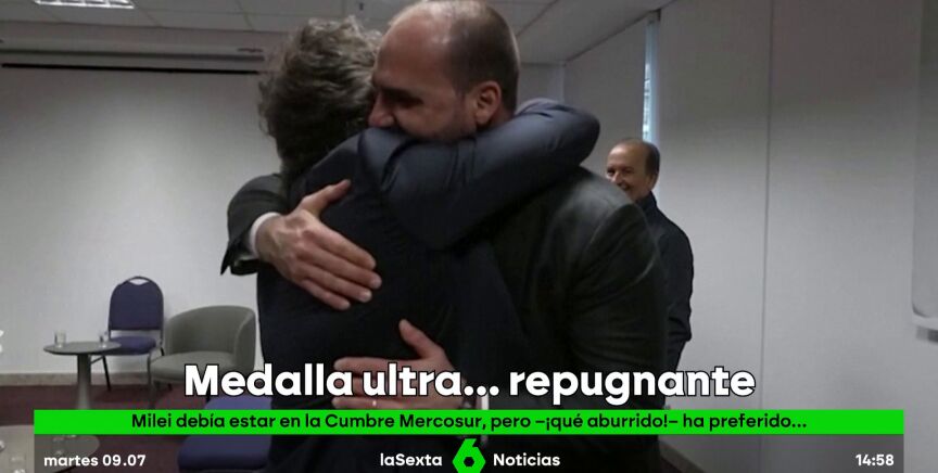 El presidente argentino, Javier Milei, ha recibido por parte del expresidente brasileño, Bolsonaro, una medalla de su "club de machos", en la que se pueden leer las palabras "Imorrível", "Imbrochável" e "Incomible", las cuales guardan un significado homófobo y sexista.