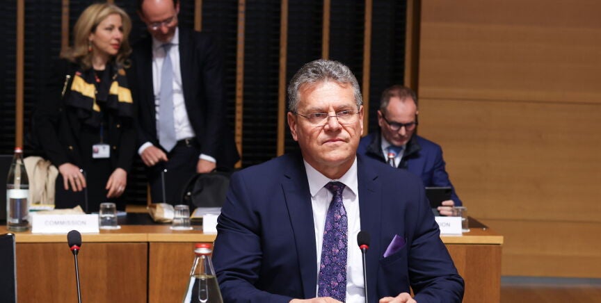 A su llegada a la reunión, Sefcovic ha dicho que la discusión se centrará en cómo se adaptará el bloque "a lo que yo describiría como un cambio de paradigma del sistema global de comercio".