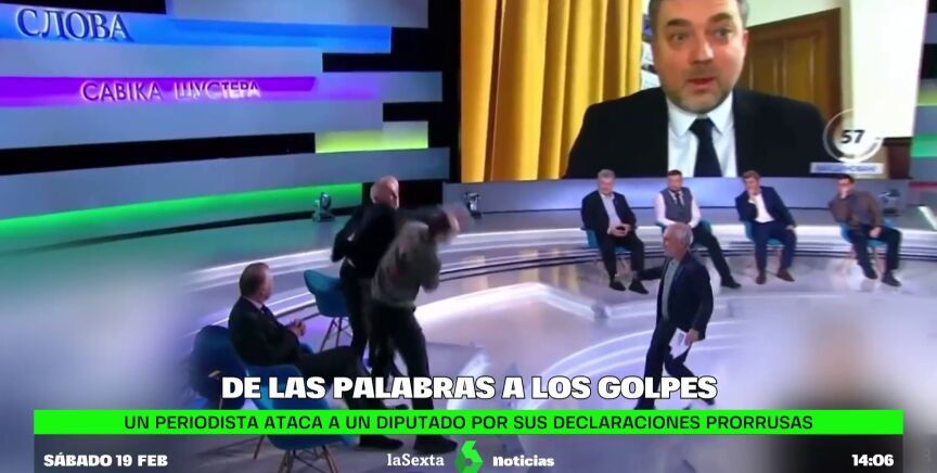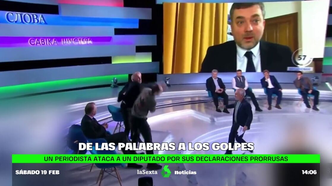 Tensa escena la que se vivió en la televisión ucraniana cuando un periodista golpeó sin reparos en la cara a un político prorruso cuando se negó a condenar la postura de Vladimir Putin.