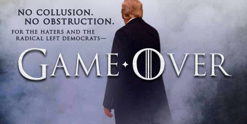 "Ni conspiración, ni obstrucción. Para los que me odian y los izquierdistas radicales demócratas... Game Over", señaló Trump en un mensaje divulgado en las redes sociales, minutos después de que Barr hablara del informe del fiscal especial Robert Mueller y enviara una versión censurada al Congreso.