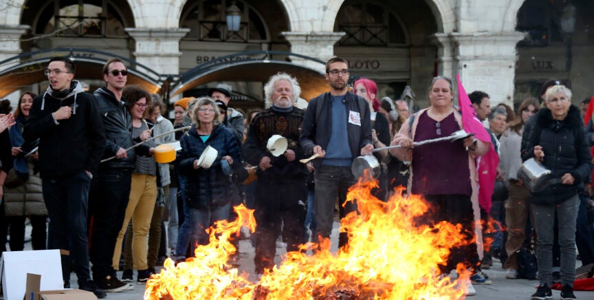 La imagen se ha repetido en Toulouse, Rennes, Amiens, Limoges o Marsella con estos "conciertos de cacerolas" celebrados a la misma hora a la que Macron comparecía en las pantallas francesas. En Dijon la concentración no estaba autorizada y la Policía ha empleado gases lacrimógenos para dispersar a los asistentes.