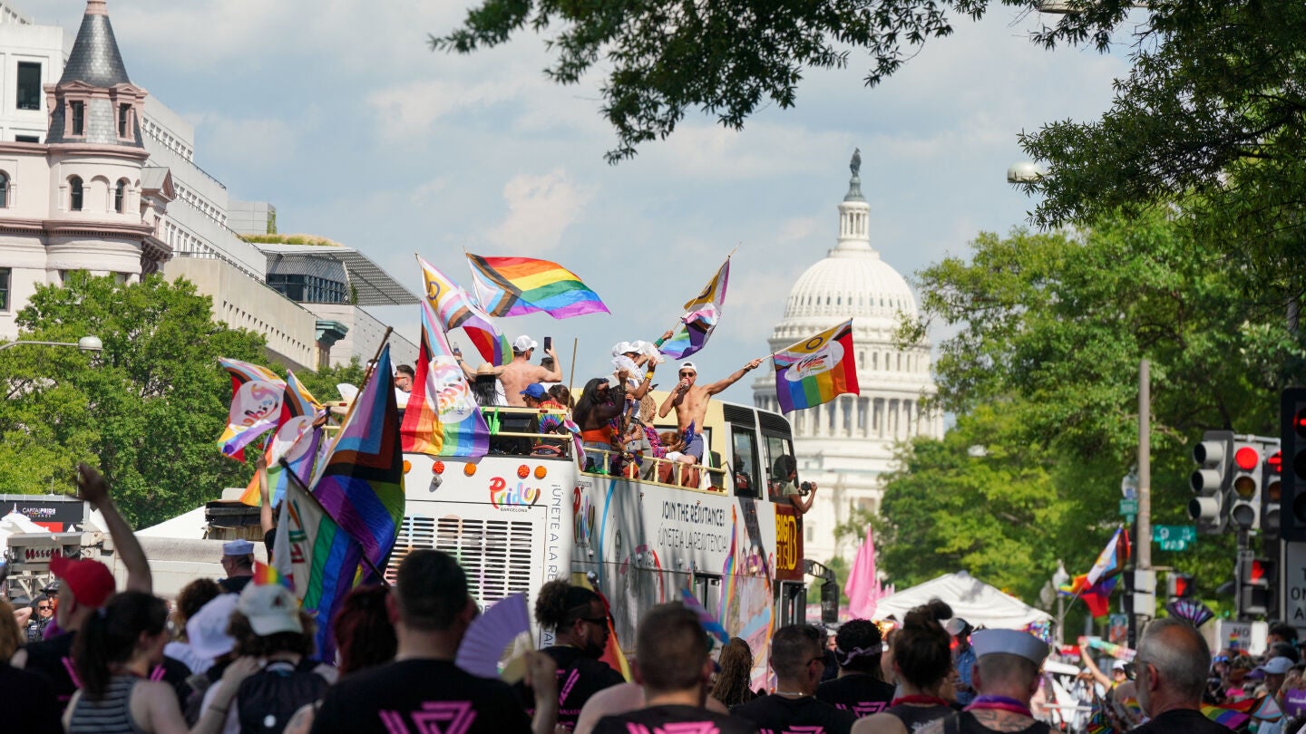Las calles de Washington (EEUU) se han llenado de cientos de banderas multicolor, pancartas y música para celebrar la edición del Orgullode 2025. Este año, la llegada de este evento tiene más sentido que nunca tras la noticia de los recortes en derechos LGTBIQ+ por parte de Donald Trump, presidente de Estados Unidos.