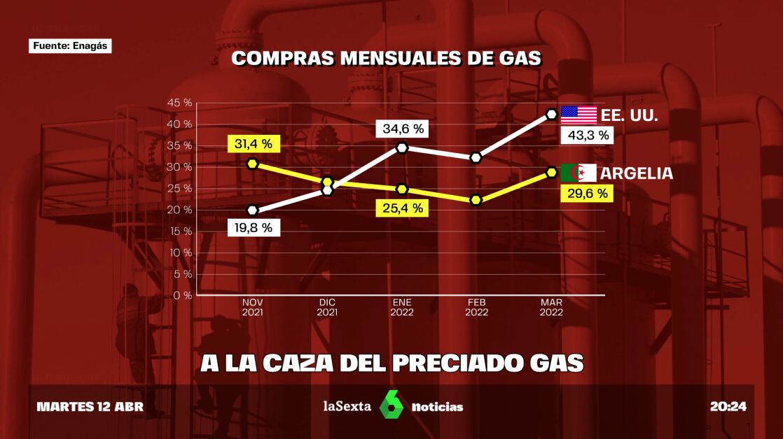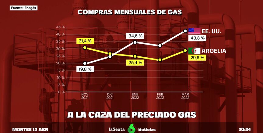 Sobrevuela una posible subida de precios, pero España ha cambiado de mayor proveedor, ahora es Estados Unidos. Las importaciones se han multiplicado por cinco en un año, y por tercer mes consecutivo nos venden más gas que Argelia.