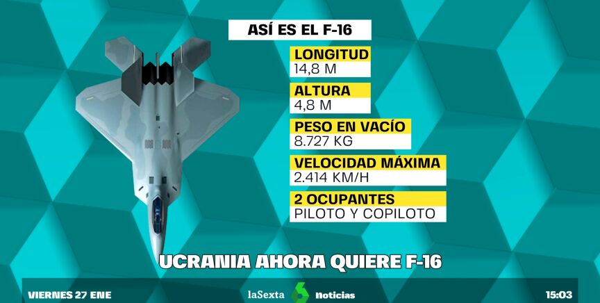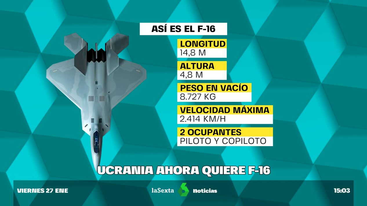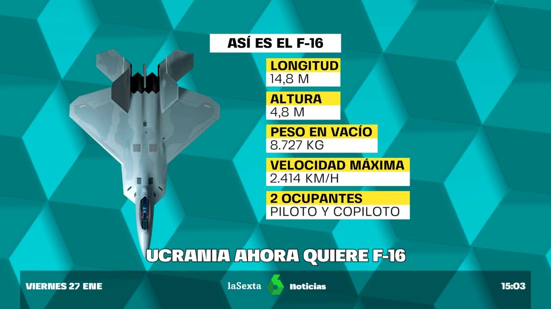 - Ucrania podría utilizar los cazas F16, no de manera inmediata sino a largo plazo. Yago Rodríguez advierte hoy en 'Al Rojo Vivo': "Si adiestrar una unidad de carros de combate lleva meses, adiestrar pilotos de combate; pasar de un MIG29 a un F16, es un proceso que puede llevar años. Este tipo de aviones podría ser un apoyo interesante para eliminar parte de las defensas aéreas rusas".