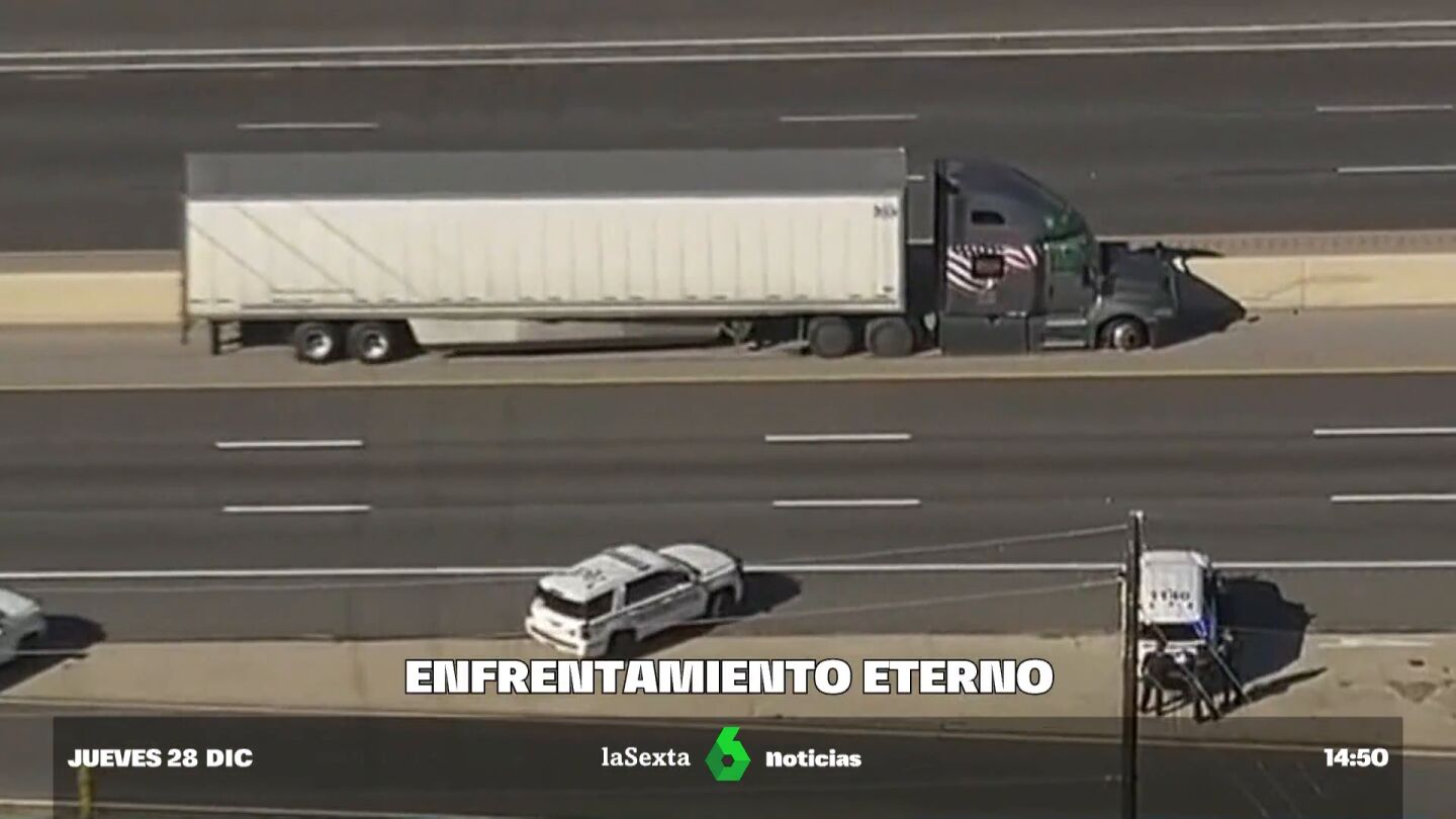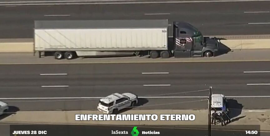 Unas imágenes captadas por el helicóptero de una cadena de noticias local muestran la tensa situación vivida en la autopista interestatal 10, a las afueras de la ciudad texana de Houston, Texas (Estados Unidos). La policía había intentado inmovilizar un enorme camión de remolque que circulaba peligrosamente por la carretera. Tras una persecución, el conductor se detiene en el arcén y comienza un enfrentamiento de casi cuatro horas.