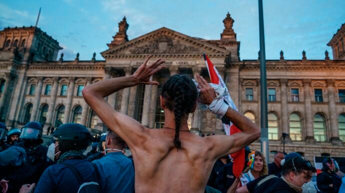 Al grito de 'Somos el pueblo', manifestantes intentaron tomar el Parlamento alemán. En realidad, el pueblo no son, sino unos 200 negacionistas de extrema derecha, incluidos neonazis, antisemitas y antivacunas que se quejan de las medidas tomadas por el gobierno de Merkel para frenar la pandemia