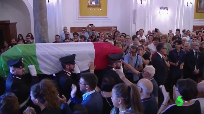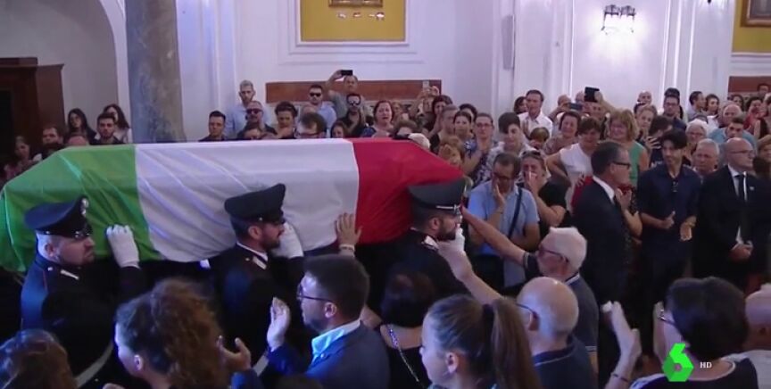 Salvini ha acudido este lunes al emotivo y politizado funeral del carabinero fallecido, en el que el que familiares y cuerpo de Policía, entre lágrimas, le han dado su último adiós.