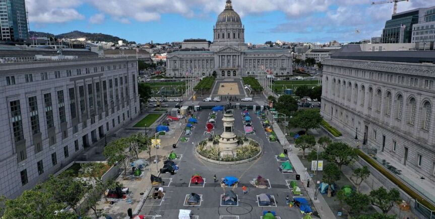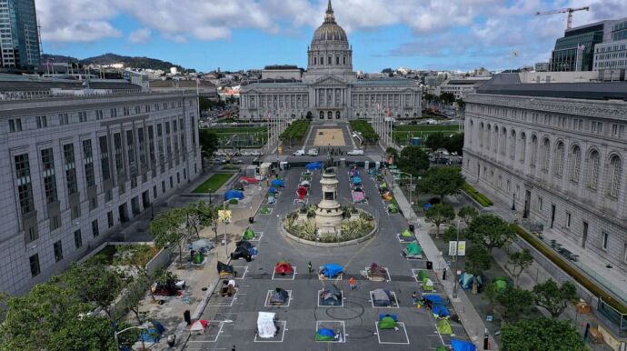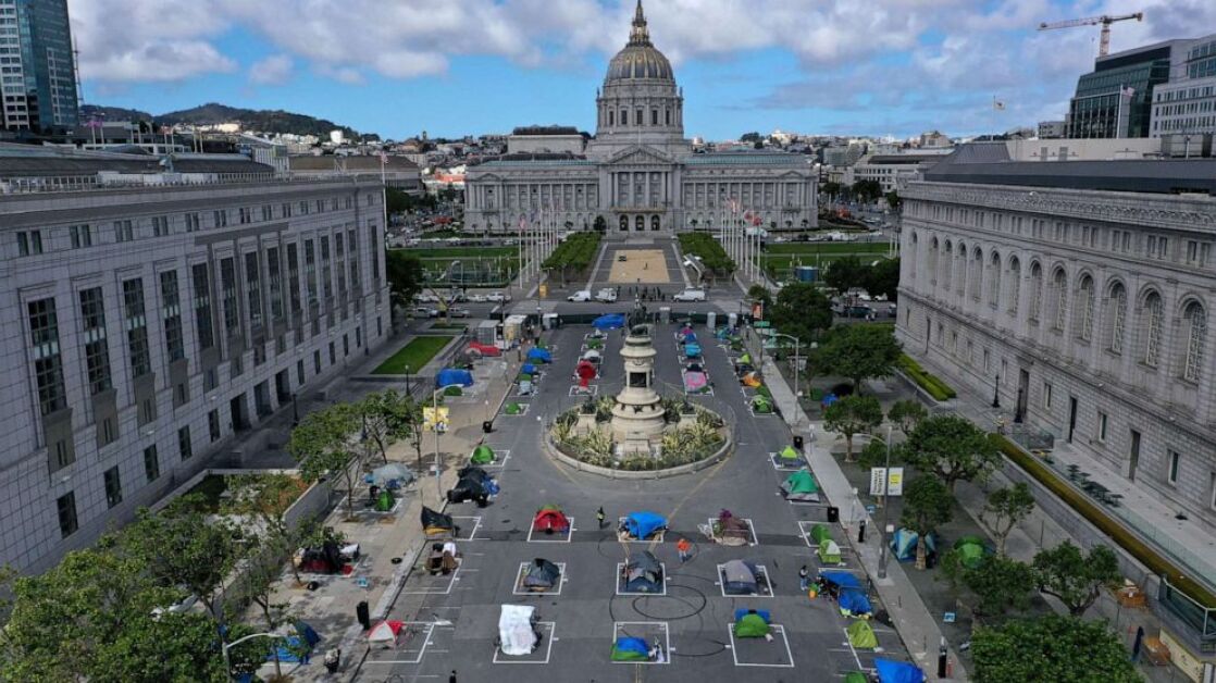 Crean un campamento para personas sin hogar en San Francisco que respeta la distancia social