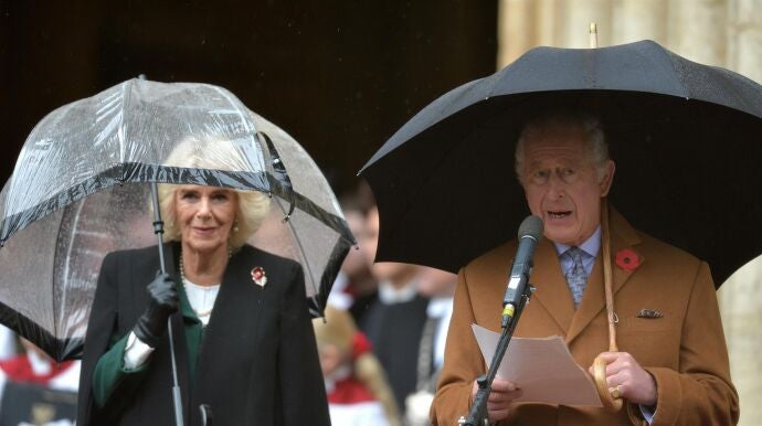 Un hombre ha sido detenido este miércoles después de lanzarle tres huevos al rey Carlos III y a su esposa, la reina Camilla, mientras celebraban un compromiso en el norte de Inglaterra.