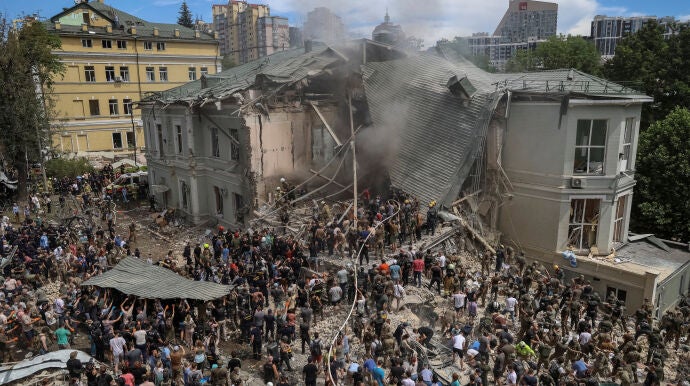Un ataque ruso en pleno día durante el día en Ucrania deja al menos 20 muertos y alcanza hospital infantil en Kyiv