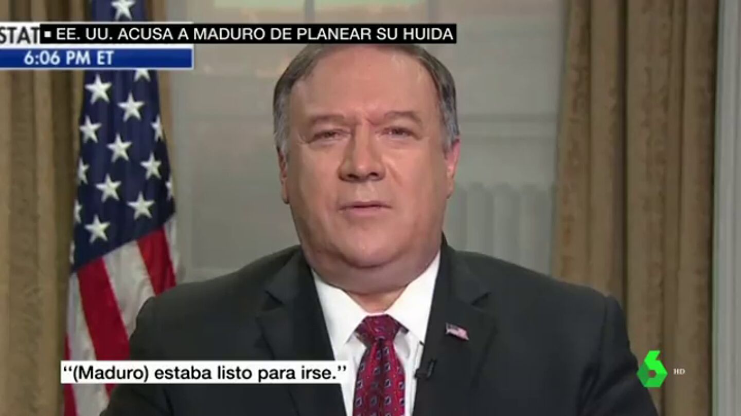 El jefe de la diplomacia, Mike Pompeo, ha afirmado que Maduro "tenía un avión en la pista y estaba listo para irse esta mañana pero los rusos le indicaron que debía quedarse". Según Pompeo, Maduro "se dirigía a La Habana".