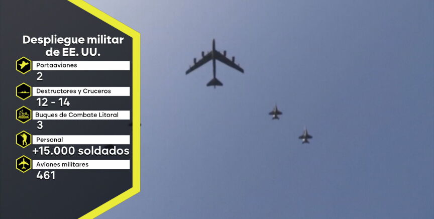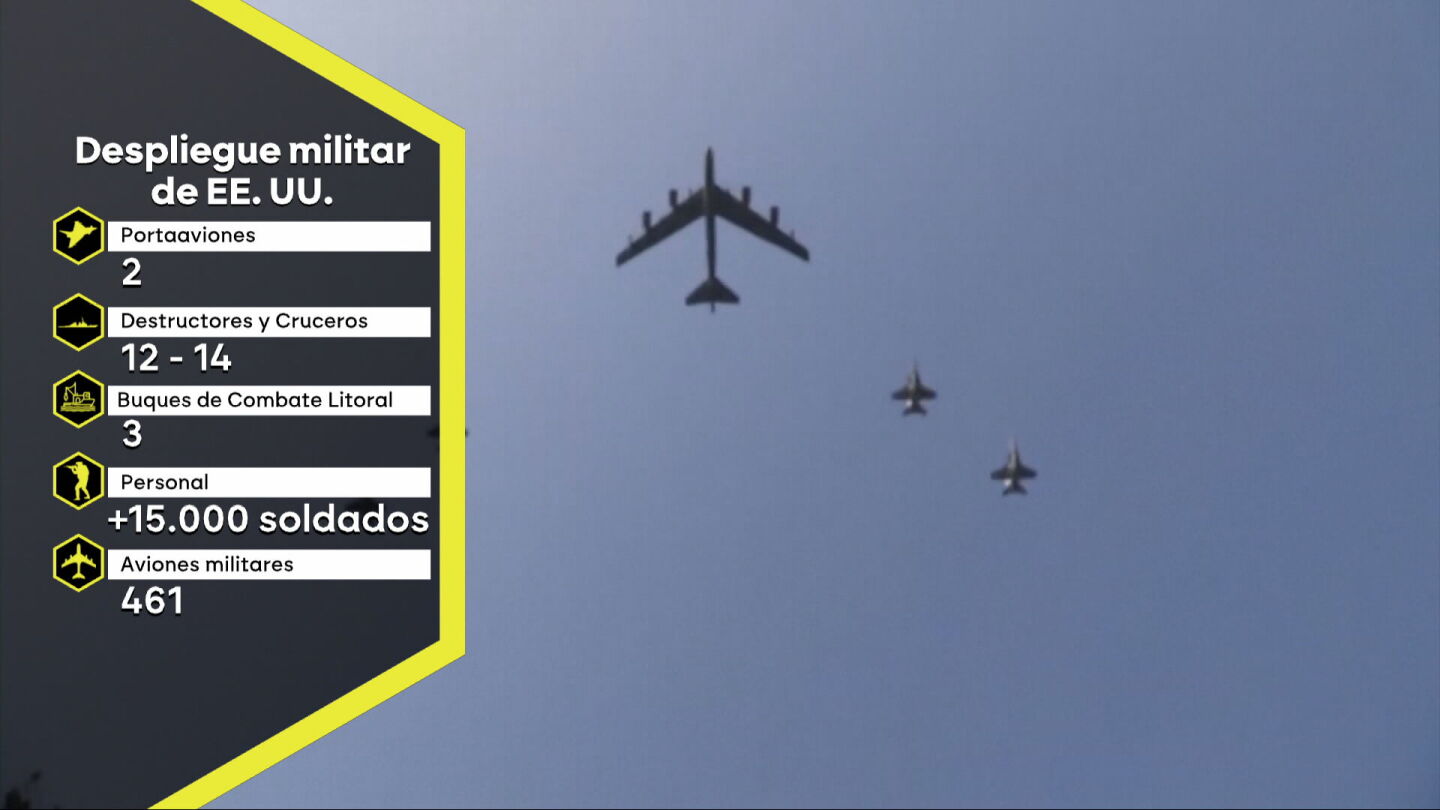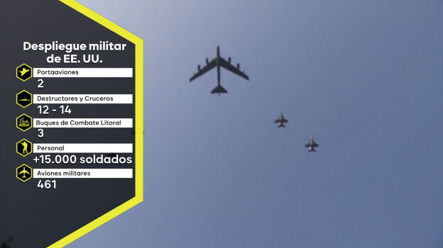 Los detalles El ejército estadounidense ha realizado el mayor despliegue militar desde la guerra de Irak: dos portaviones, entre 12 y 14 destructores, más de 400 aviones militares y 15.000 soldados.