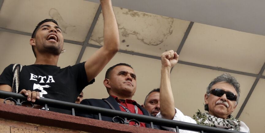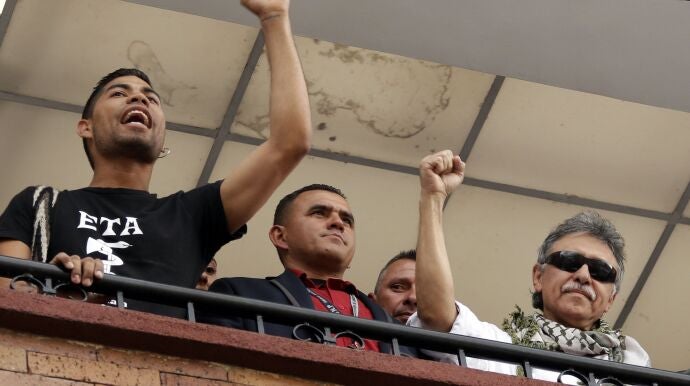 El jefe de las FARC pide perdón a España después de que uno de sus acompañantes mostrase una camiseta con el símbolo de ETA