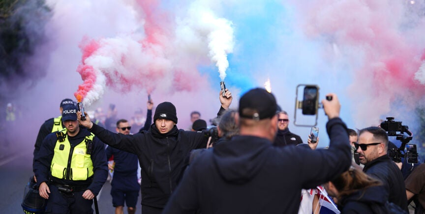 Grupos violentos de ultraderecha han protagonizado disturbios en Epping, Londres, tras la detención de un menor migrante acusado de intentar agredir a una niña. Estos colectivos, enmascarados y portando bengalas, se han concentrado frente a un hotel que acoge a menores migrantes, exigiendo su expulsión con pancartas racistas y gritos de "echadles". Aunque los manifestantes afirman protestar pacíficamente, las imágenes muestran enfrentamientos con la policía que resultaron en cinco detenciones. La situación recuerda los altercados en Torre-Pacheco, España, y los agitadores prometen continuar con el caos hasta lograr su objetivo de expulsar a los menores.