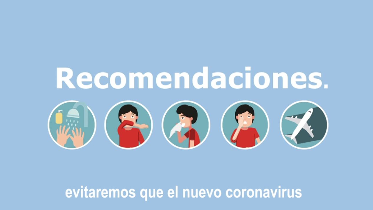 Asimismo, en él se muestran una serie de recomendaciones para evitar que el nuevo coronavirus se propague. Lavarse las manos con agua y jabón; cubrirnos la boca y la nariz al toser o estornudar con la parte interna del brazo; usar pañuelos desechables y tirarlos después de su uso; evitar tocarnos los ojos, la nariz y la boca (puesto que las manos facilitan su transmisión); y no viajar si no es imprescindible.