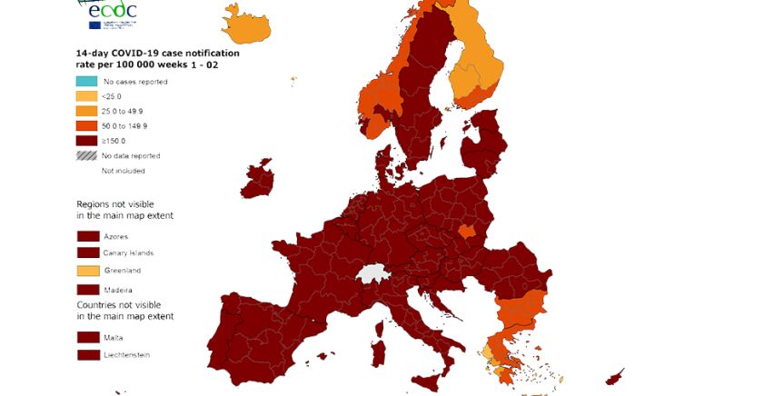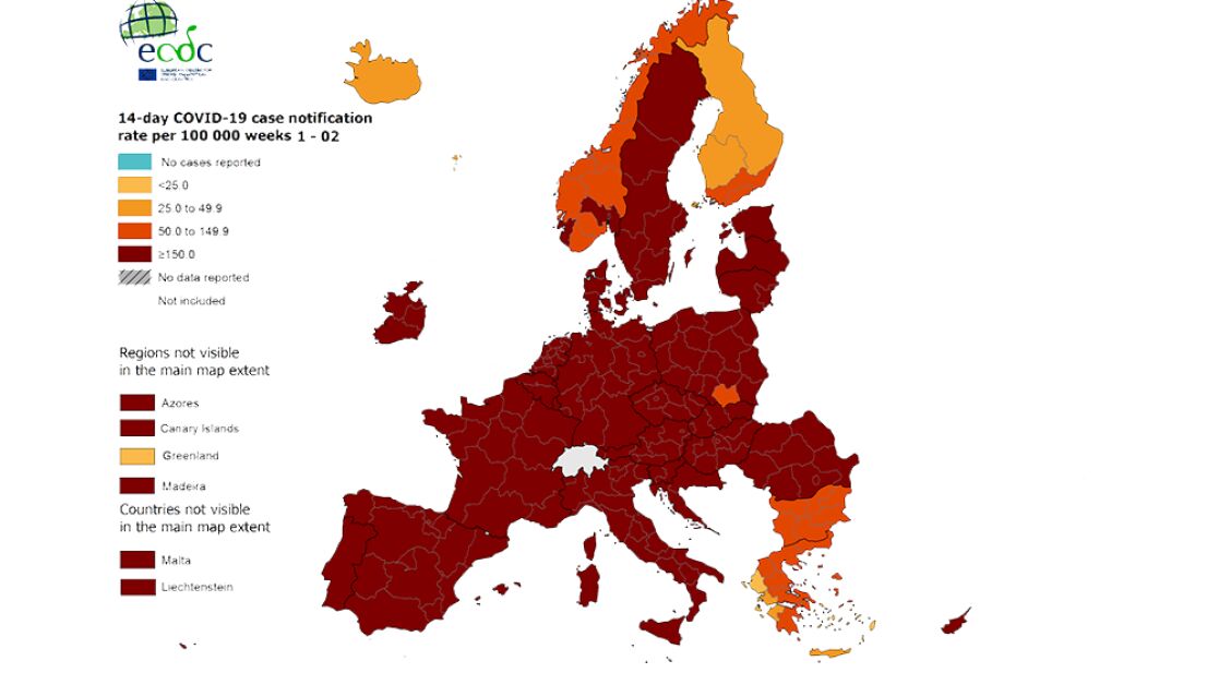 Europa recomienda no viajar a las zonas con una incidencia superior a 500 casos, y España está entre ellas