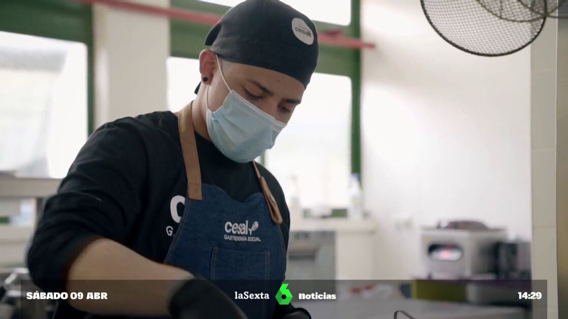 Visitamos la escuela de cocina de la ONG Cesal, que ayuda a jóvenes migrantes a encontrar trabajo a través de una escuela de hostelería. El proyecto cuenta con financiación europea.