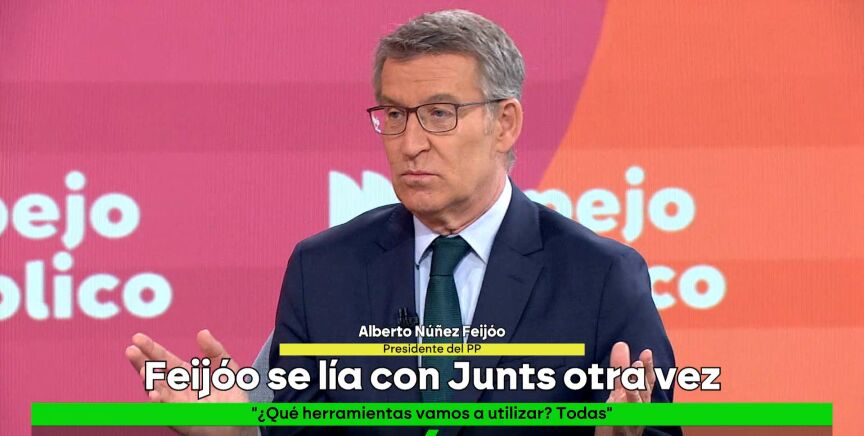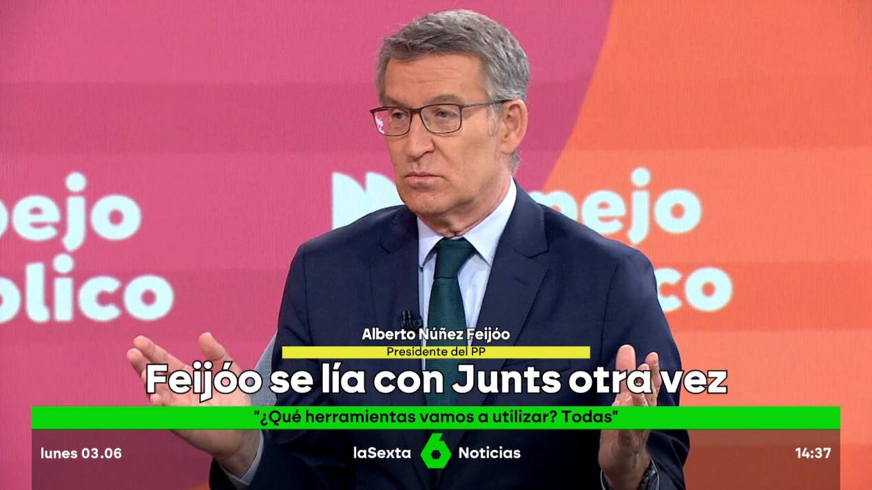 El líder del PP no descarta presentar una moción de censura contra Sánchez tras las elecciones europeas. Lo haría con el hipotético apoyo de Junts. Desde el PSOE señalan que "por fin" Feijóo muestra su verdadera cara.