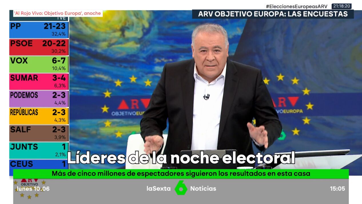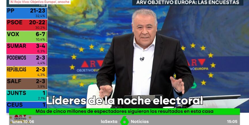 Nueva victoria electoral para laSexta, que consigue el especial más visto de las elecciones del 9J con 'Al Rojo Vivo: Objetivo Europa', dirigido por Antonio García Ferreras.