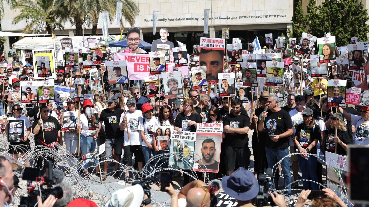 En Tel Aviv, familiares de rehenes secuestrados por Hamás durante los ataques del 7 de octubre de 2023 han organizado un "campamento protesta" con alambre de espino. Esto ocurre tras la difusión de imágenes de dos secuestrados en Gaza por grupos armados palestinos. Las familias critican la publicación de contenido sobre la situación de los rehenes y han establecido una sentada en la plaza de los Rehenes exigiendo "dignidad" para los afectados. El Foro de Familiares de Rehenes y Desaparecidos pide al gobierno israelí y a la administración de Donald Trump que actúen para resolver la situación y traer a los rehenes de vuelta.
