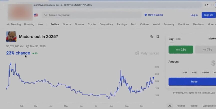 Un estadounidense apostó más de 30.000 dólares en Polymarket a que Nicolás Maduro sería capturado, ganando un premio de 436.000 dólares. Se sospecha que recibió un chivatazo de la Administración Trump, lo que ha generado controversia. La casa de apuestas se niega a pagar, argumentando que el Gobierno negó que fuera una invasión. Polymarket permite apostar sobre cualquier evento futuro, desde series de televisión hasta eventos políticos. La identidad del apostador sigue sin revelarse, y medios como CBS sugieren que el soplo podría implicar a Seguridad Nacional. Las autoridades aún deben decidir sobre el pago del premio.