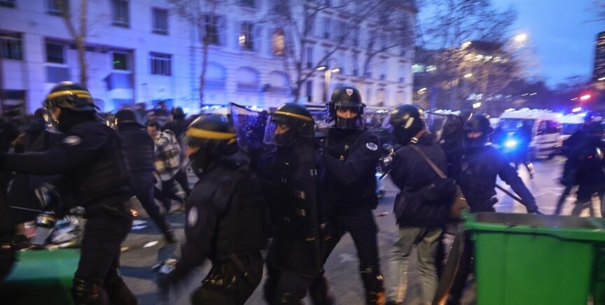 Los ánimos estaban caldeados y los disturbios han estallado de nuevo. Los policías la han emprendido a patadas y porrazos contra los ciudadanos que rechazan la reforma de las pensiones.
