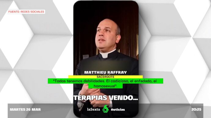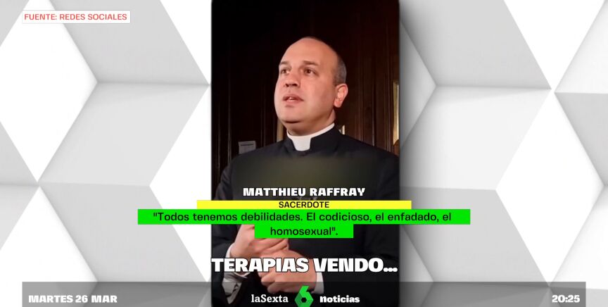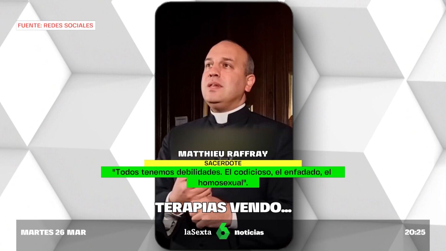 "Todos tenemos debilidades. El codicioso, el enfadado, el homosexual". Esta es una de las declaraciones de Matthieu Raffray, un cura francés que con más de 60.000 seguidores en redes sociales predica que hay que combatir la homosexualidad, puesto que según él es "cosa del diablo". Este sacerdote defiende que se trata de un "pecado" y sostiene que la solución es la "terapia de conversión sexual". Unas polémicas declaraciones contra las que el Gobierno francés ha decidido actuar a través de acciones legales.