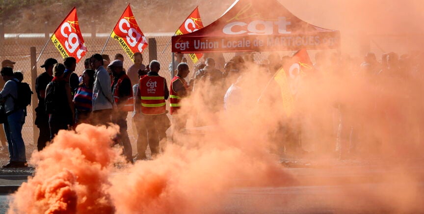 Una parte de los sindicatos franceses, liderados por la Confederación General del Trabajo (CGT), organizan una huelga "intersectorial" para reclamar subidas salariales, lo que extiende las protestas que se vienen prolongando desde finales de septiembre en varias refinerías.