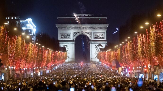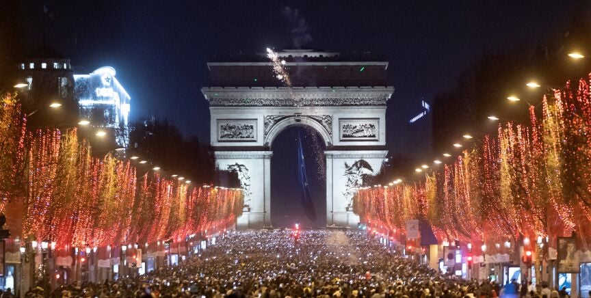 El viernes, tras el discurso del presidente Emmanuel Macron con los tradicionales propósitos de Año Nuevo, la Torre Eiffel y el Elíseo se iluminaron con los colores y bandera de la UE, y durante una semana otros monumentos del país se vestirán también del azul europeo.