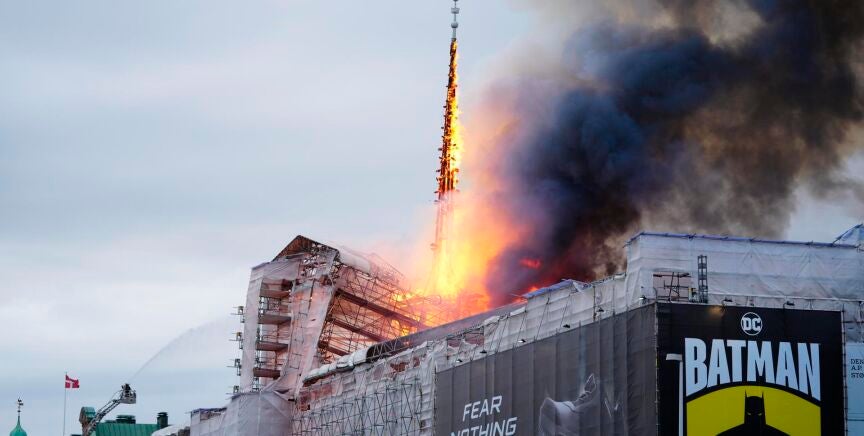 El incendio, que está arrasando el edificio, ha provocado el derrumbe de partes del techo y sigue estando fuera de control, según han indicado este martes los servicios de emergencia. "Según se queman las estructuras, partes del edificio se están derrumbando", ha afirmado Jakob Vedsted Andersen, director de los servicios de incendios y rescate de Copenhague, en declaraciones recogidas por la agencia danesa Ritzau.