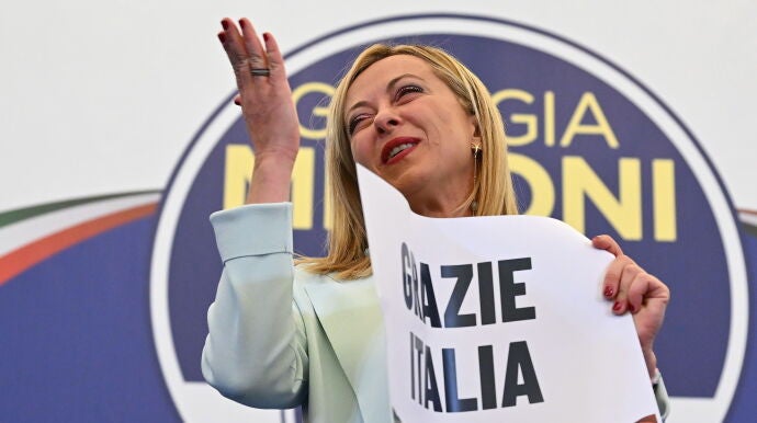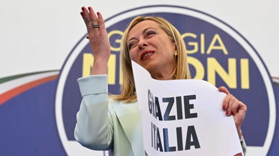La líder del ultraderechista Hermanos de Italia (FdI),Giorgia Meloni, ha asegurado esta madrugada que la derecha gobernará "para unir a todos los italianos" en sus primeras declaraciones después de que su partido se convirtiera en el más votado del país, lo que la llevará a ser la primera mujer que gobernará Italia.