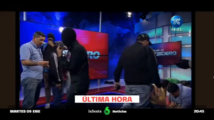 Entre los múltiples incidentes que se están produciendo en Ecuador, que se encuentran en estado de alerta, uno de los últimos ha sido el asalto de un grupo de encapuchado a un plató de televisión en pleno directo.