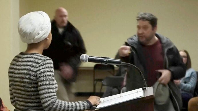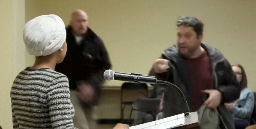 Un hombre ataca a la congresista demócrata Ilhan Omar durante un mitin en Minneapolis