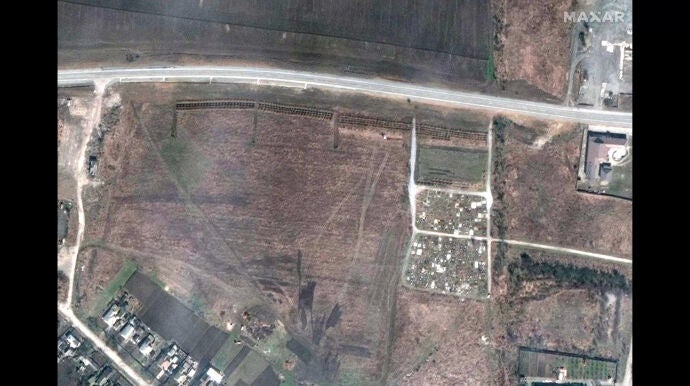 La imagen tomadas desde un satélite de la empresa tecnológica Maxar, fue denunciada por el alcalde de Mariúpol, Vadym Boychenko, a través de su cuenta de Telegram. La fosa estaría situada junto al cementerio de Mangush, ciudad portuaria muy cercana a Mariúpol.