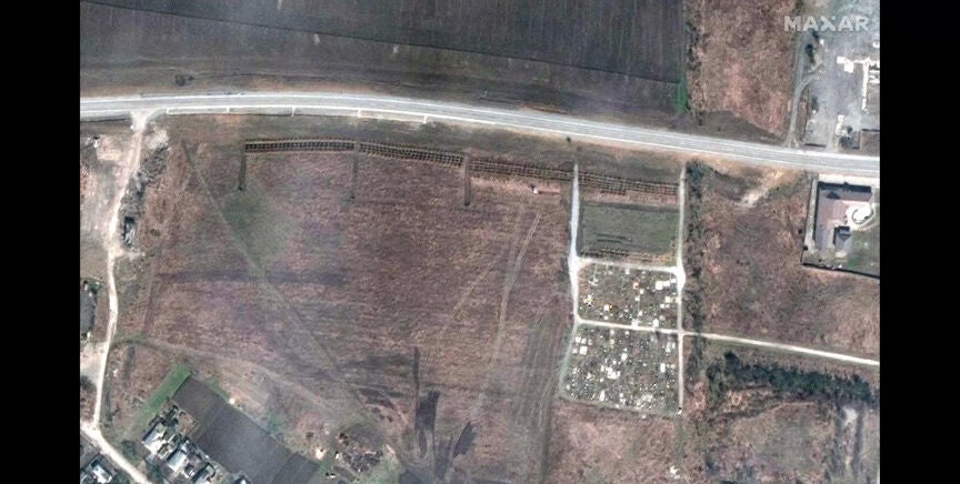 Las imágenes de satélite están sirviendo para descubrir otra de las caras que revelan el horror de la guerra en Ucrania. En este caso, el de una fosa común localizada en las proximidades de Mariúpol en la que las autoridades ucranianas han calculado que habría entre 3.000 y 9.000 cadáveres.