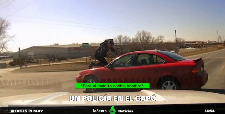 El policía protagonista de esta operación, Patrick McCarty, fue tajante desde el primer momento: "Para el coche, hombre. Para el coche". Pero el piloto no hizo caso y se llevó por delante al agente, que se encaramó al capó para no ser arrollado. Allí arriba, el agente seguía insistiendo: "Para el maldito coche. Baja del maldito... Pisa el freno".
