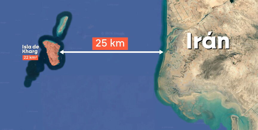 La isla de Kharg, ubicada en medio del Golfo Pérsico, es el enclave petrolífero más importante de los iraníes. Son 22 kilómetros cuadrados, el mismo tamaño que la ciudad de Ceuta, y se encuentra a 25 de la costa de Irán.