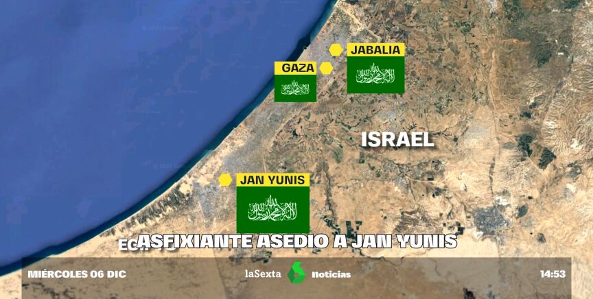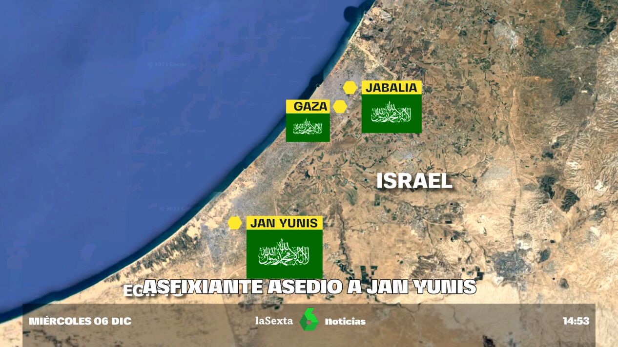 Los tanques israelíes ya han entrado en la ciudad de Jan Yunis, aunque aún no la tienen bajo control. Daniel Hagari, portavoz del Ejército de Israel, ha asegurado que "las tropas israelíes están luchando actualmente en Jan Yunis, la capital de Hamás en el sur de la Franja de Gaza".
