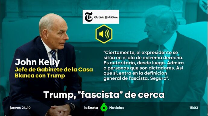 John Kelly, ex jefe de gabinete de la Casa Blanca durante la presidencia de Donald Trump, ha revelado detalles alarmantes sobre el candidato republicano. Según Kelly, ha mostrado una inquietante admiración por Adolf Hitler y su estilo de liderazgo autoritario, lo que lo sitúa en la extrema derecha y lo define, según Kelly, "como un fascista".
