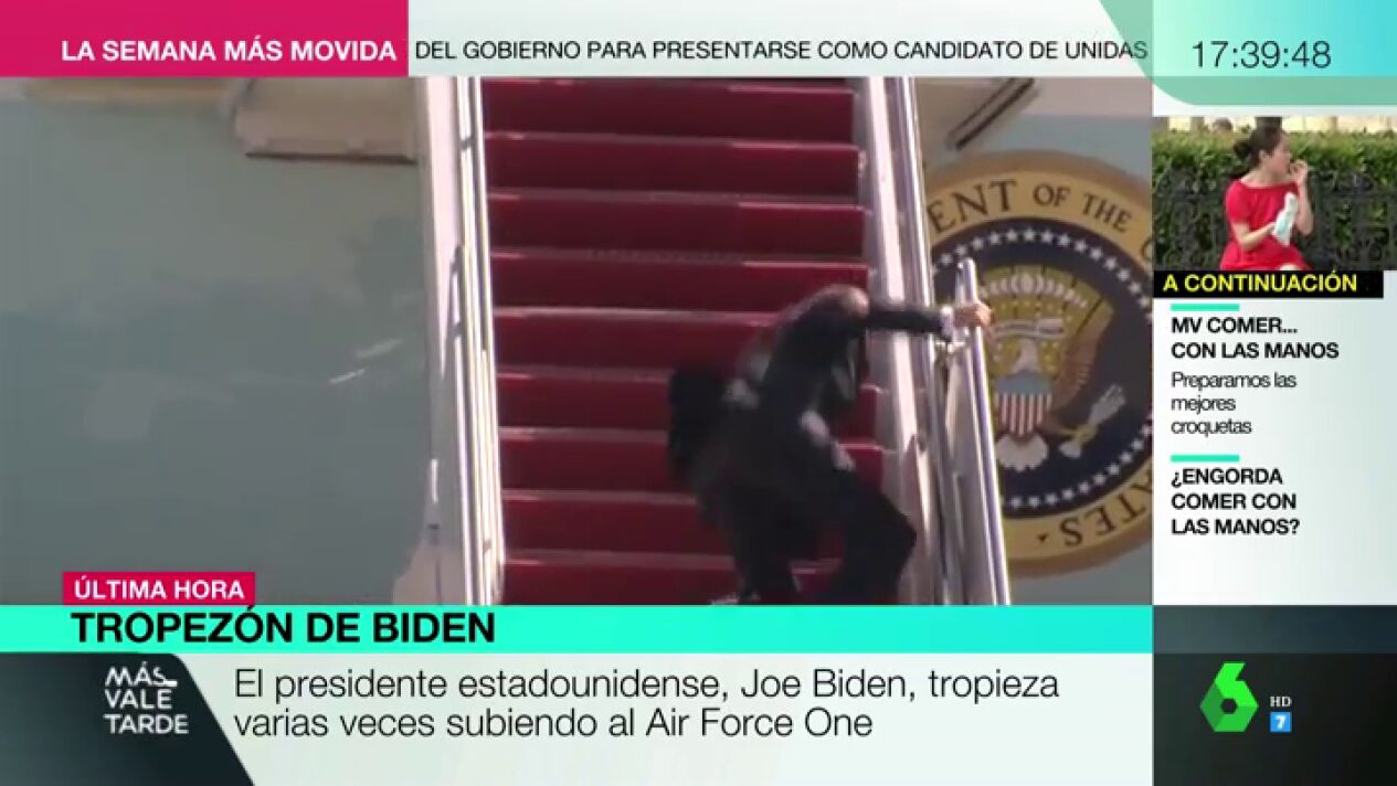 El presidente de los Estados Unidos, Joe Biden, ha sido el protagonista involuntario del día al tropezarse en las escaleras del avión oficial y caerse ante las cámaras.