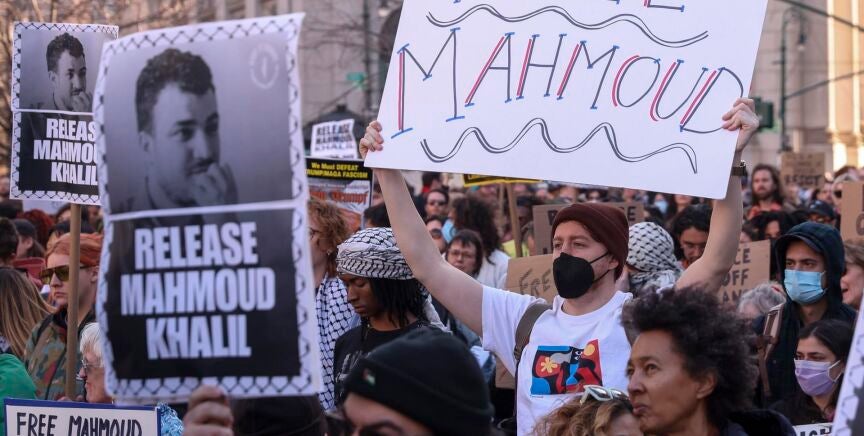 Un juez de Nueva York ha bloqueado su deportación mientras miles de personas piden su libertad. Para Trump, según ha dicho en su red social, la de Khalil es la primera detención de todas las que vendrán. Toda una declaración de intenciones.
