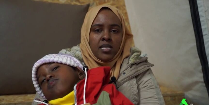 La mujer que aparece en el vídeo es la madre de Abdul. Su hijo de siete años sufre una parálisis cerebral, no se puede levantar ni mover solo y tiene ataques epilépticos. En el campo no hay especialistas para tratar su enfermedad.