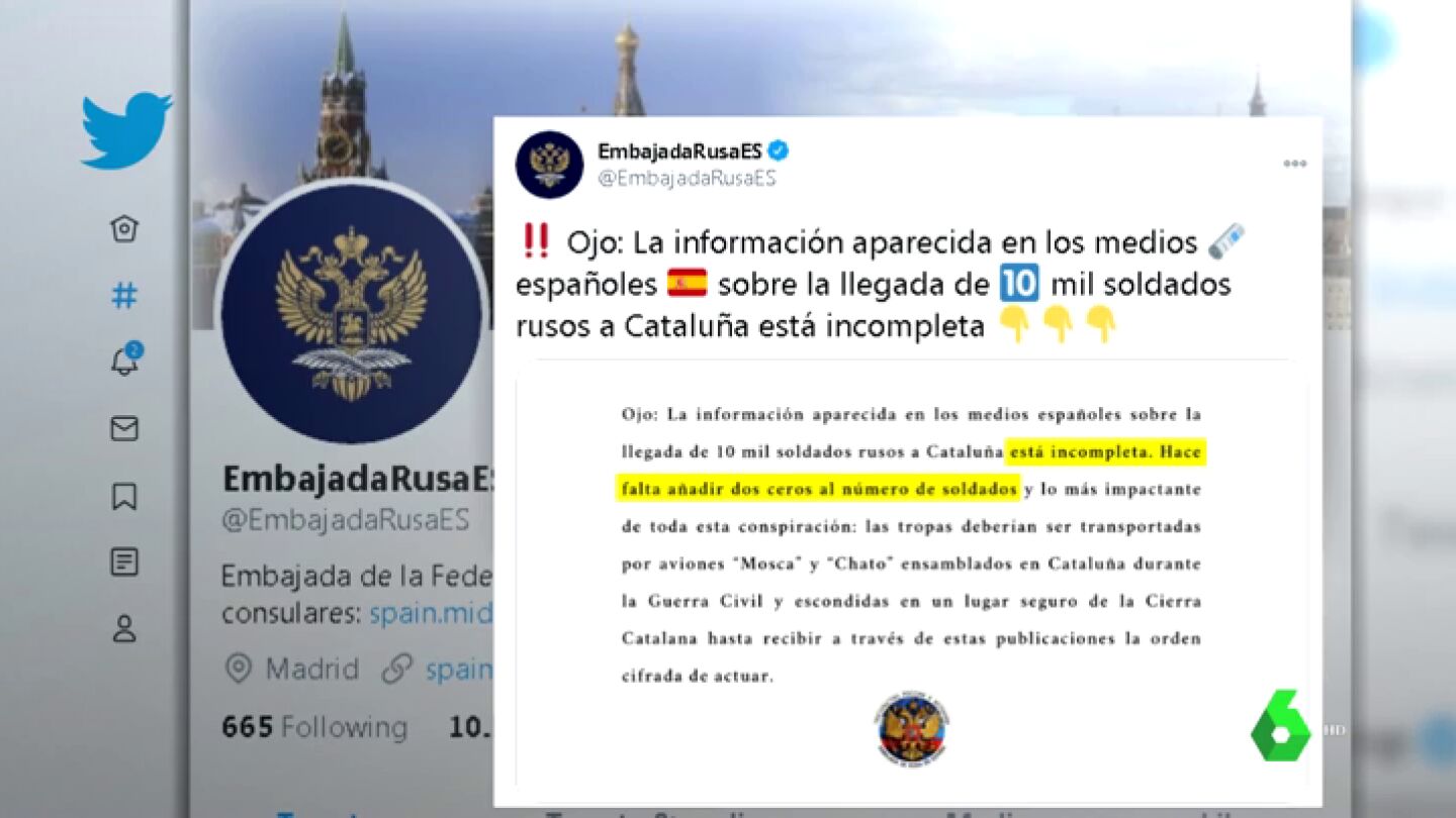 La Embajada rusa responde irónicamente sobre la oferta de 10.000 soldados para Cataluña: "Faltan dos ceros"