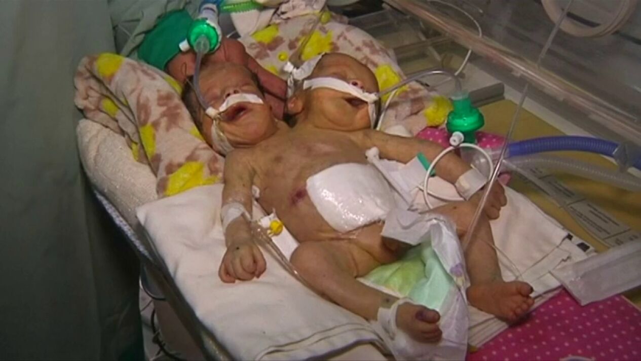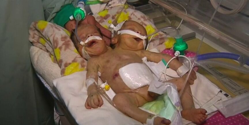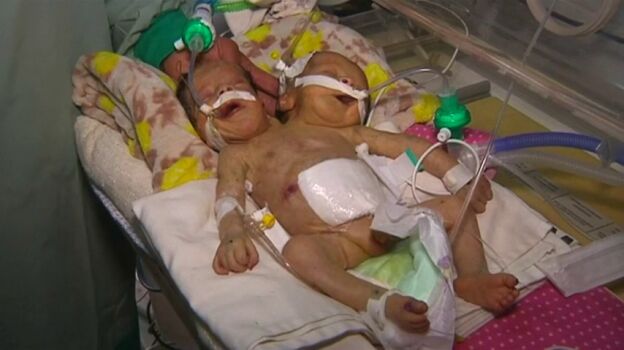Los médicos de Yemen han pedido ayuda internacional para salvar a los pequeños Jaliq y Rahim, como muestra el vídeo. "Dos niños en un cuerpo, con dos cabezas, dos corazones, dos pulmones, dos estómagos y dos espinas dorsales", han dicho.