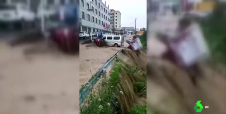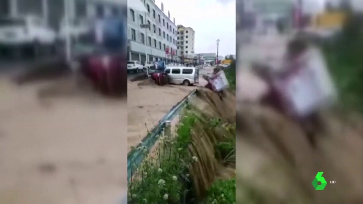 En el suroeste de China, las fuertes lluvias han arrasado con todo. En estas imágenes se muestra cómo una furgoneta cae por un barranco debido a que la carretera por la que circulaba quedó totalmente anegada.